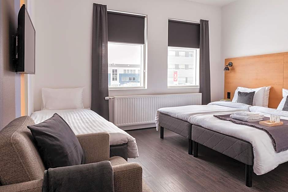 With 7,048 reviews backing the listing, 201 Hotel in Reykjavík offers a dependable set of amenities: breakfast, free Wifi, a 24-hour front desk, non-smoking rooms, wheelchair accessibility, an elevator, and free toiletries, plus a bar and kid-friendly buffet. Rates start from $149 per night.
